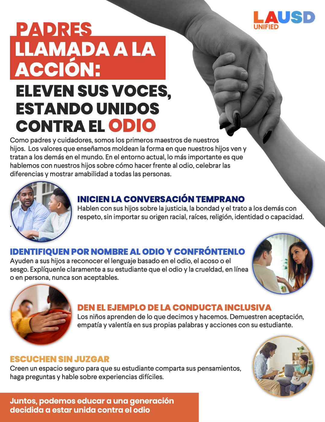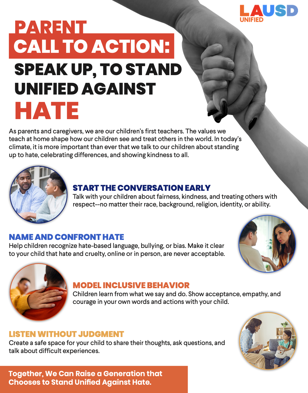 Together we have the opportunity to raise a generation that chooses unity over division and stands firmly against hate. Let’s work together to create a safe and welcoming school for all.